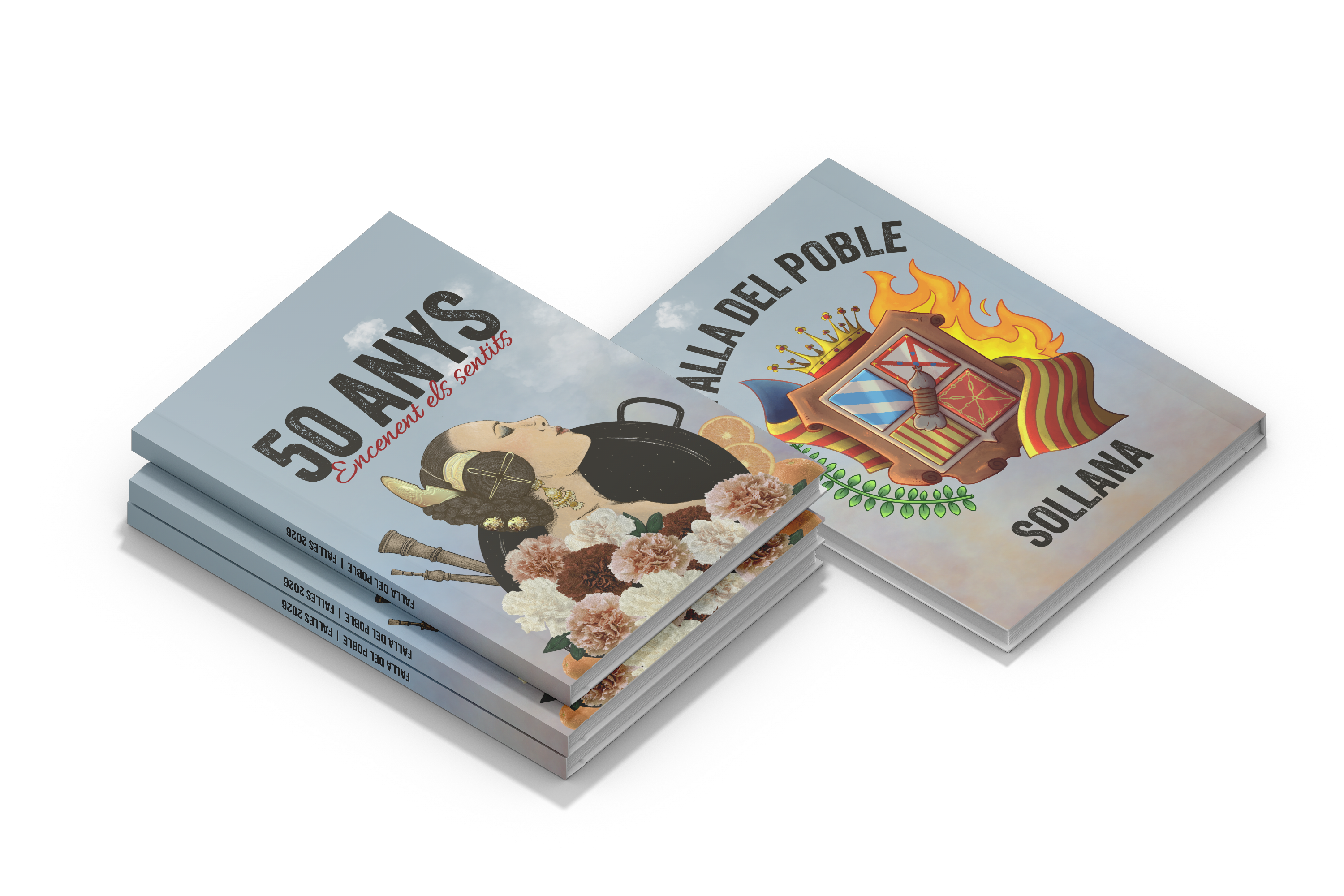 Cover design for the 2026 Falles booklet for the local falla called “La falla del Poble”, created to celebrate the commission’s 50th anniversary.